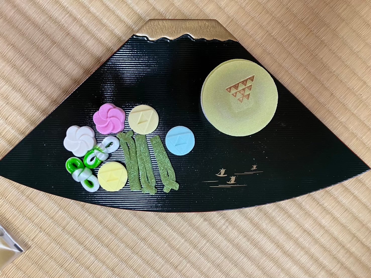 → When entering the tea room or performing a bow, the fan is placed in front of you on the tatami mat.